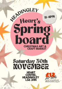 On Saturday the 30th of November, HEART’s Springboard market will be back for our annual Christmas market! We are gathering together a variety of talented new and returning faces, with an offering of unique handmade gifts.