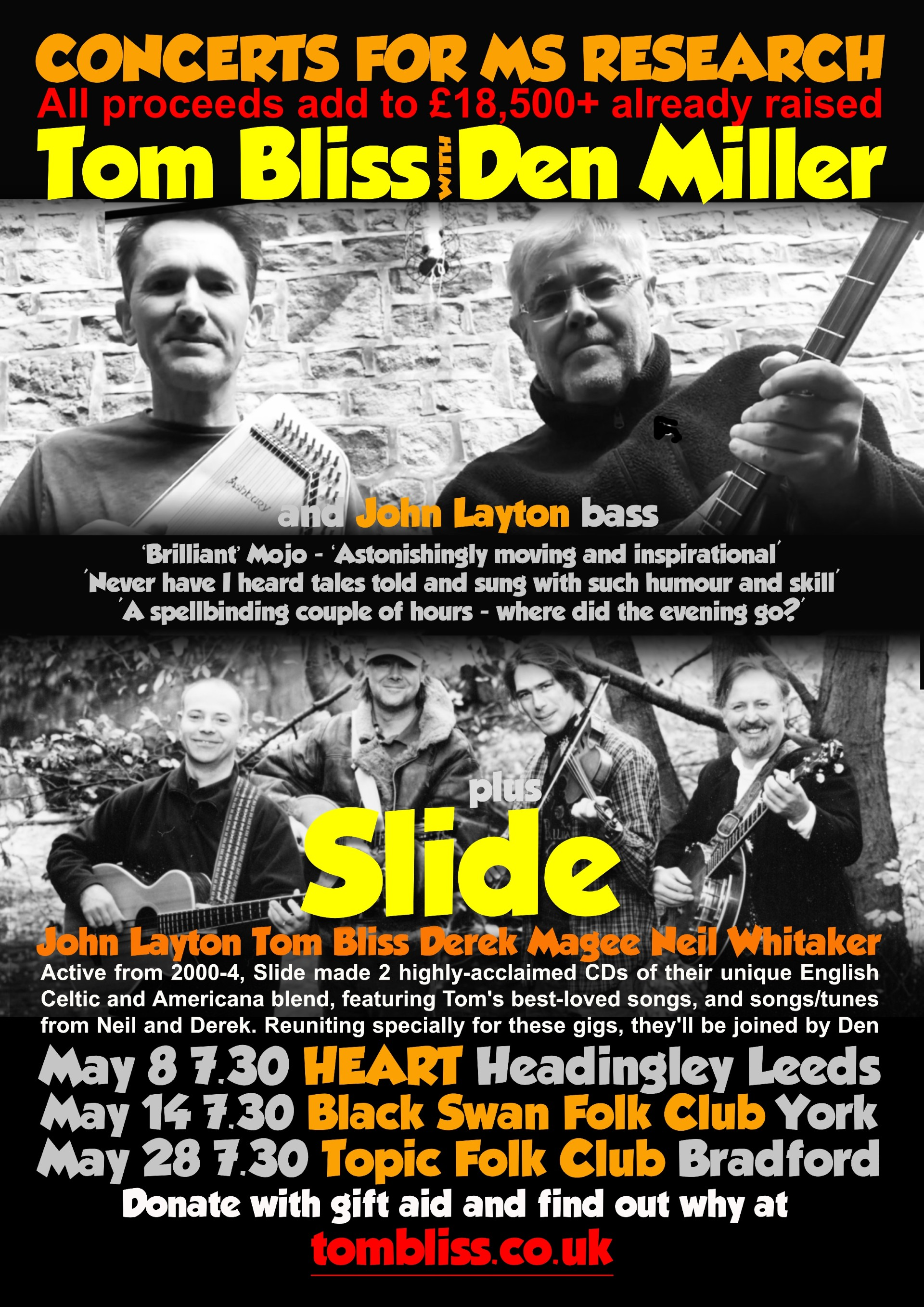 A nationally-acclaimed multi-instrumentalist, Tom Bliss writes catchy story songs in a folk style which typically tell true stories, some funny, some sad - but